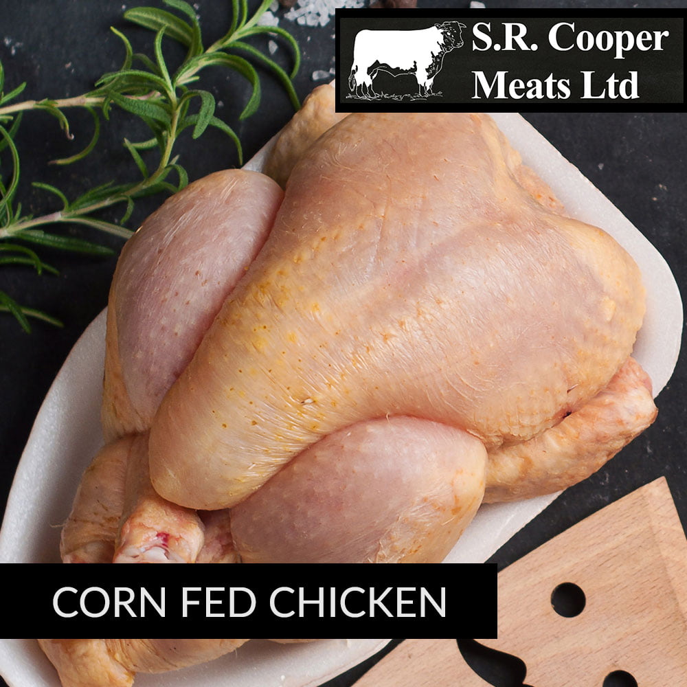 Fresh whole Corn-fed Chicken, Treat your family and guests with our lovely Corn Fed Chicken, it comes ready to create a beautiful roast plus the carcass will make a great soup, two superb meals from one chicken.