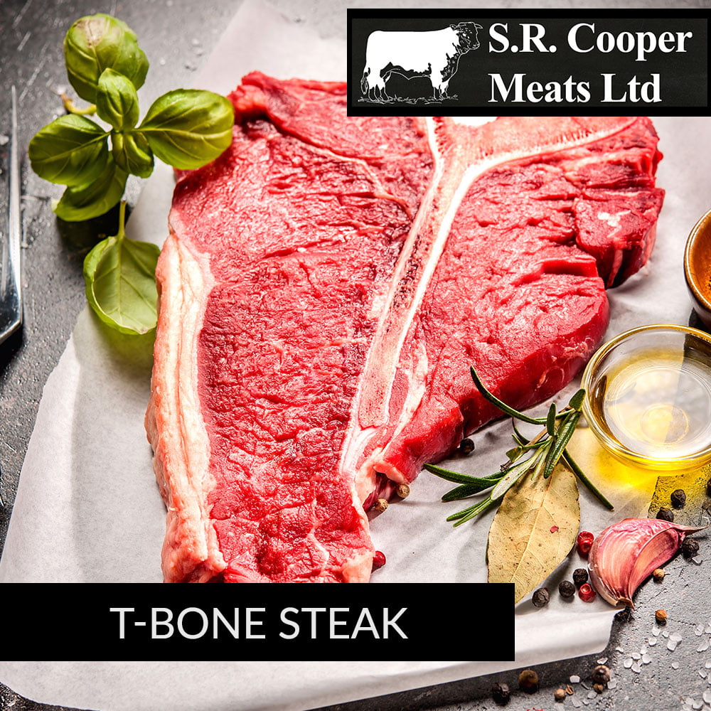T-bone Steak, featuring buttery-soft fillet steak on one side of the bone and rich, flavoursome sirloin steak on the other, is a real treat for all meat lovers. Enjoy the very best of two amazing steaks in one meal. Juicy, tender and succulent, our T-bone steaks are trimmed and prepared by our butchers and are best cooked quickly by pan frying, grilling or barbecuing. It really is a top-quality taste sensation you won’t want to miss!